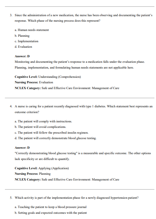 Every question has a clearly marked correct answer. Every answer includes a full written rationale. The rationale explains the pharmacological concept behind the question, the nursing process step being tested, and why each wrong answer misses the mark. Reading those rationales carefully — even for questions you get right — is how you build the drug knowledge that sticks.